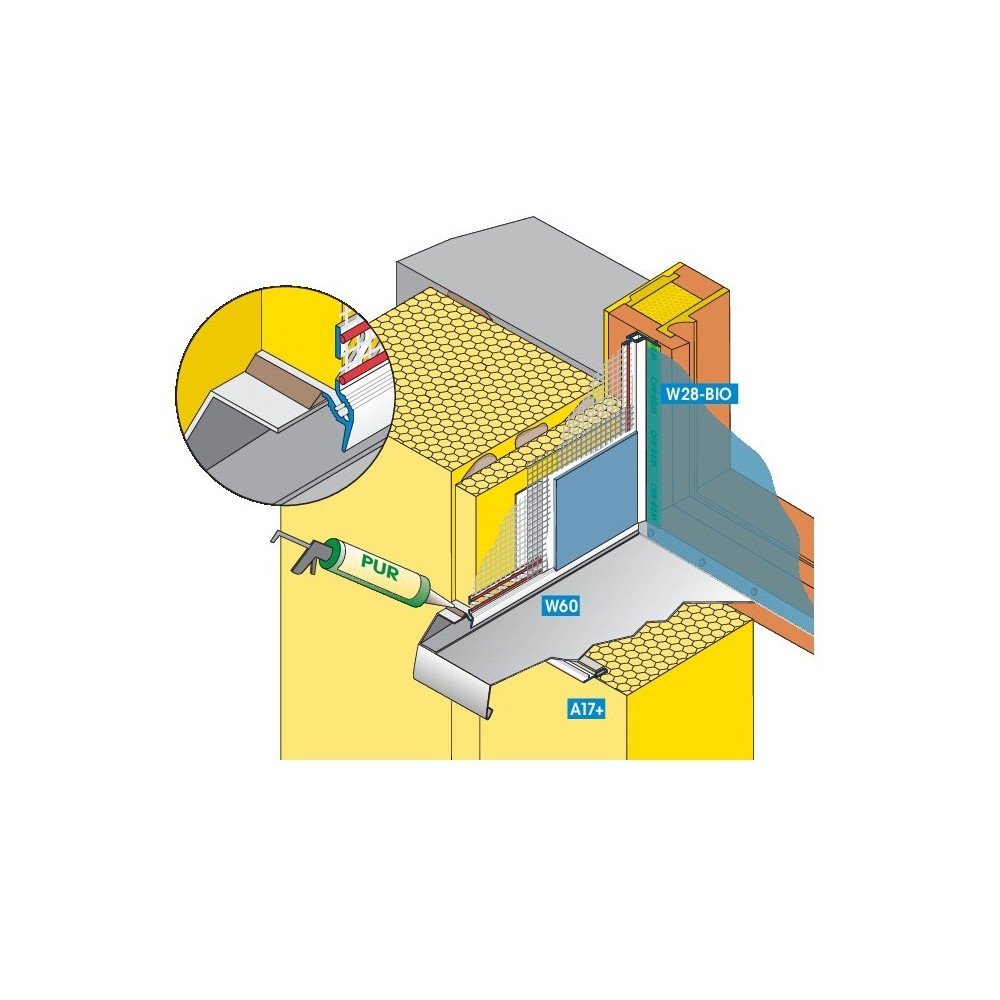 Il assure une étanchéité et une finition esthétique des jonctions autour des fenêtres et portes, en particulier pour la liaison entre l’enduit extérieur et les ouvertures (châssis, volets roulants, seuils, etc.)